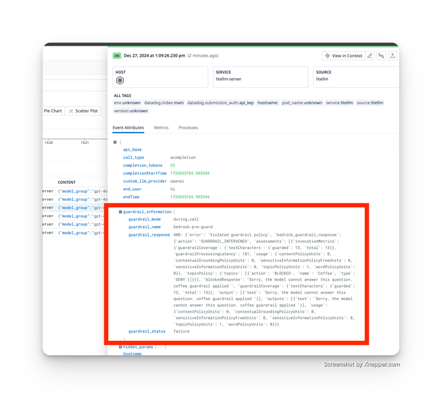 guardrailsparameter - Check your logging provider for the guardrail trace